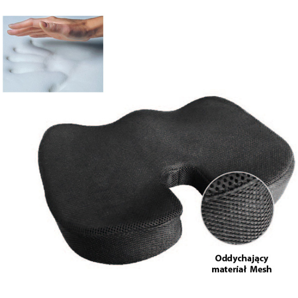 Specjalne wyprofilowanie poduszki gwarantuje jej perfekcyjne dopasowanie do ciała, zapewniając wysoki poziom komfortu i redukując uczucie drętwienia kończyn poprzez poprawę krążenia. Przewiewna poszewka Mesh zapewnia odpowiednią cyrkulację powietrza, minimalizując nadmierne pocenie się, natomiast spód z antypoślizgowego materiału stabilizuje poduszkę na miejscu, zapobiegając jej przesuwaniu się podczas użytkowania.
